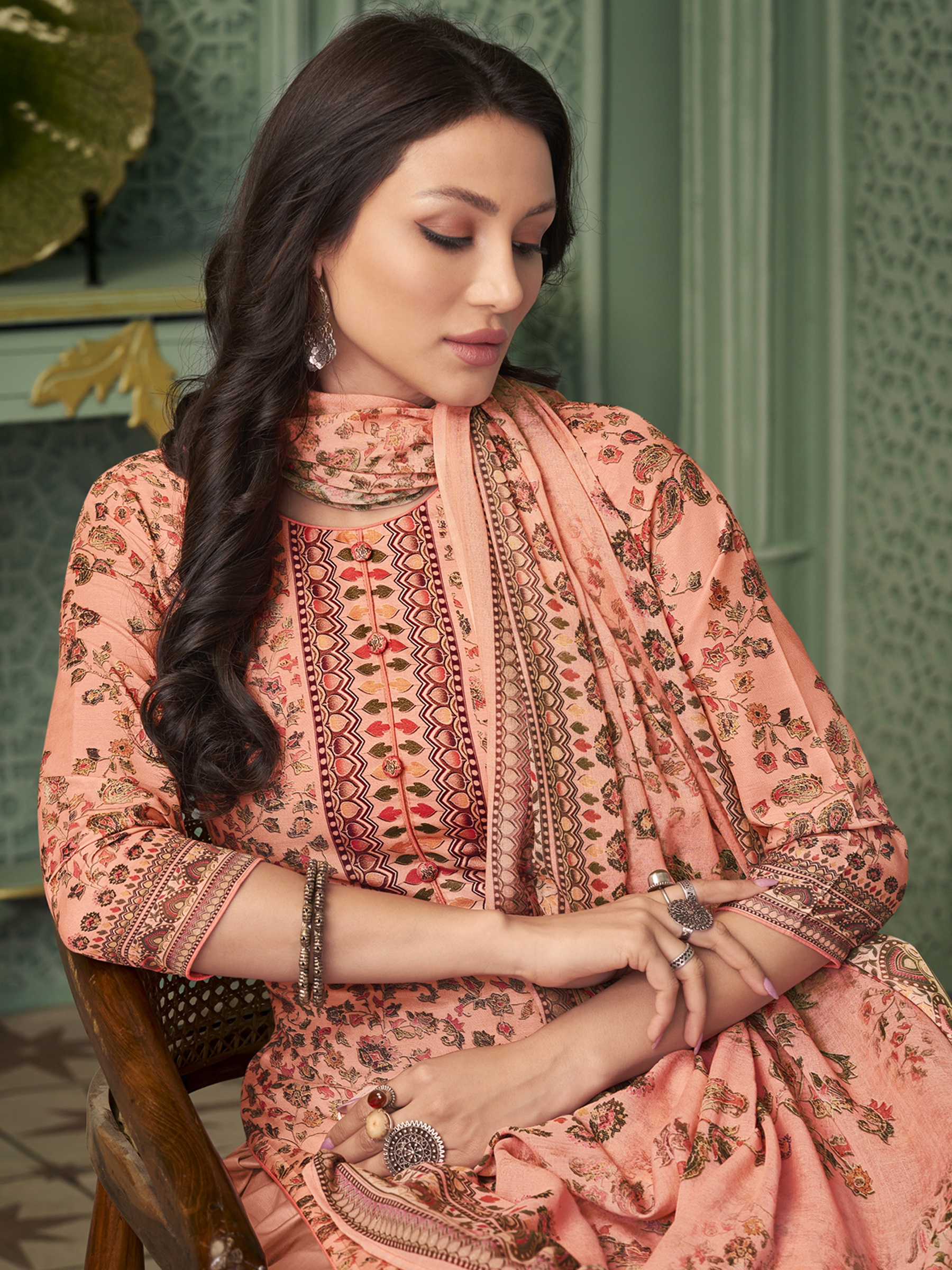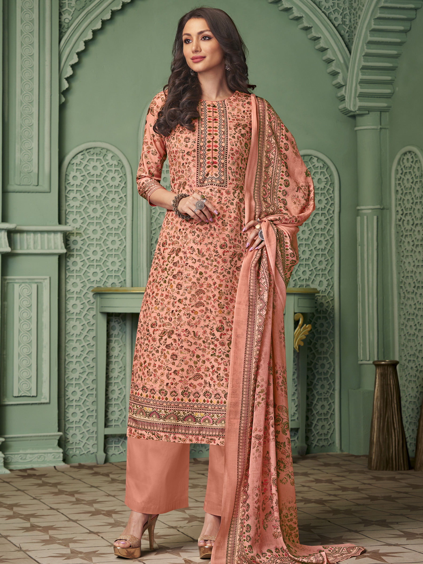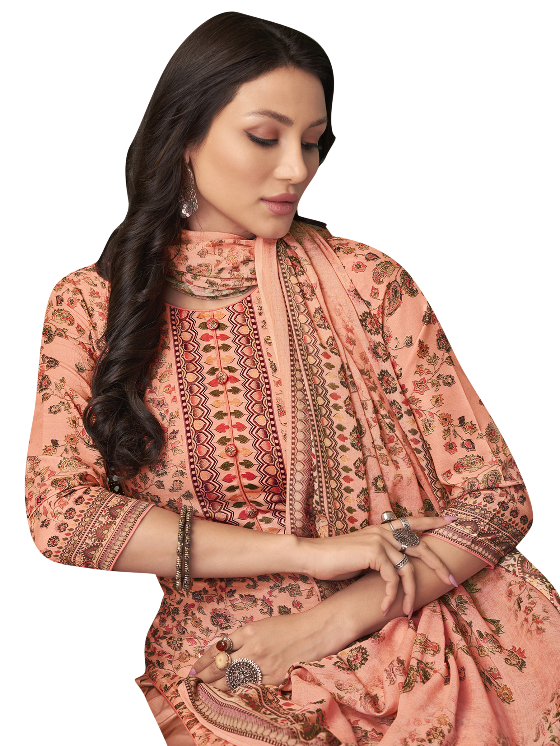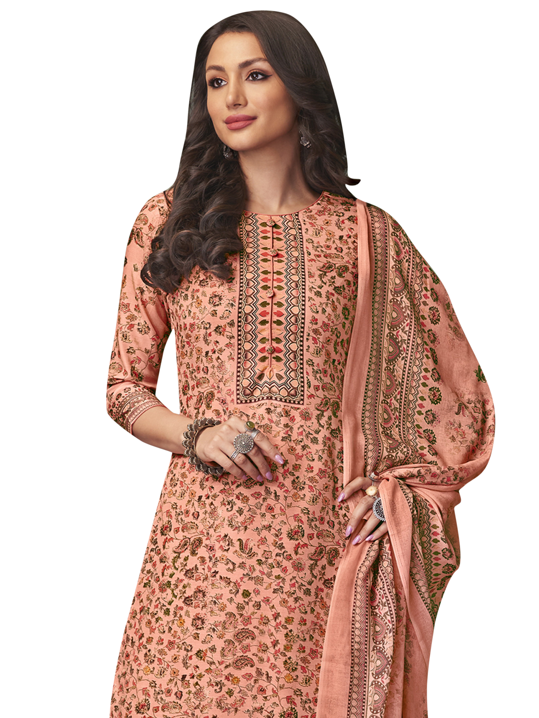 Top Colour:Peach, Bottom colour:Peach, Dupatta colour:Peach