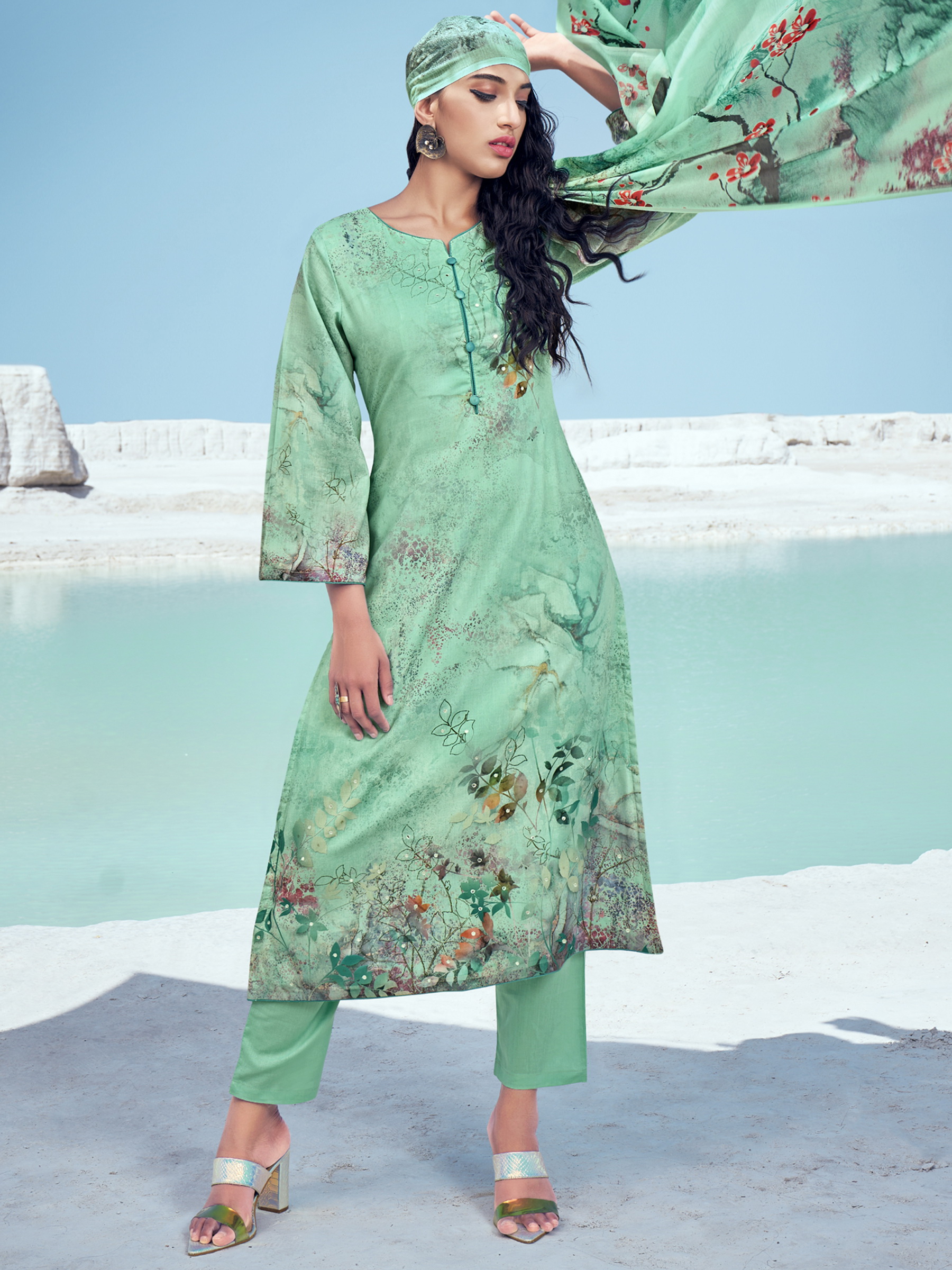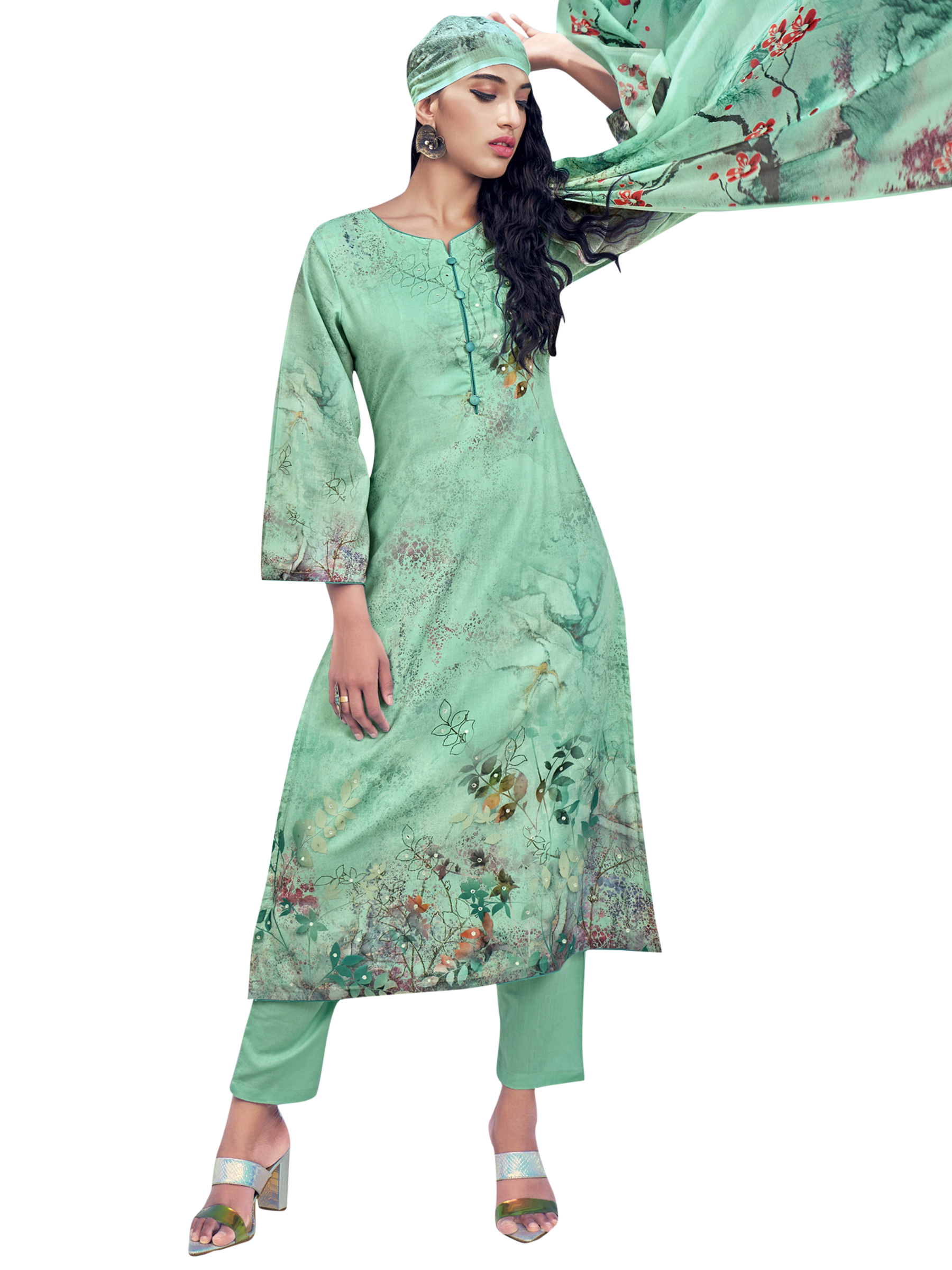 Top Colour:Green, Bottom colour:Green, Dupatta colour: Green