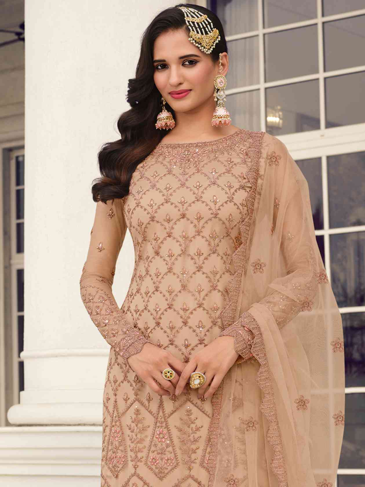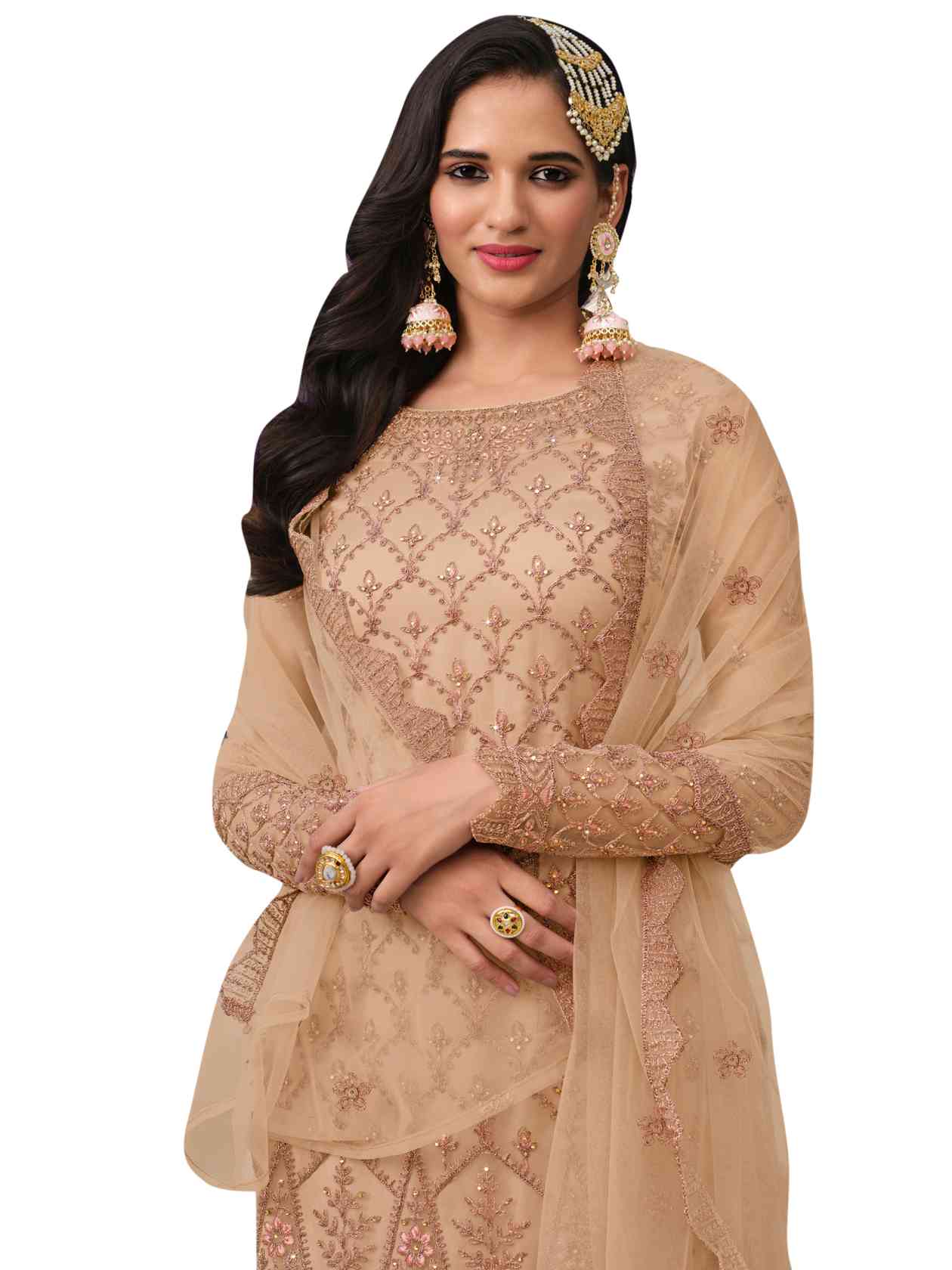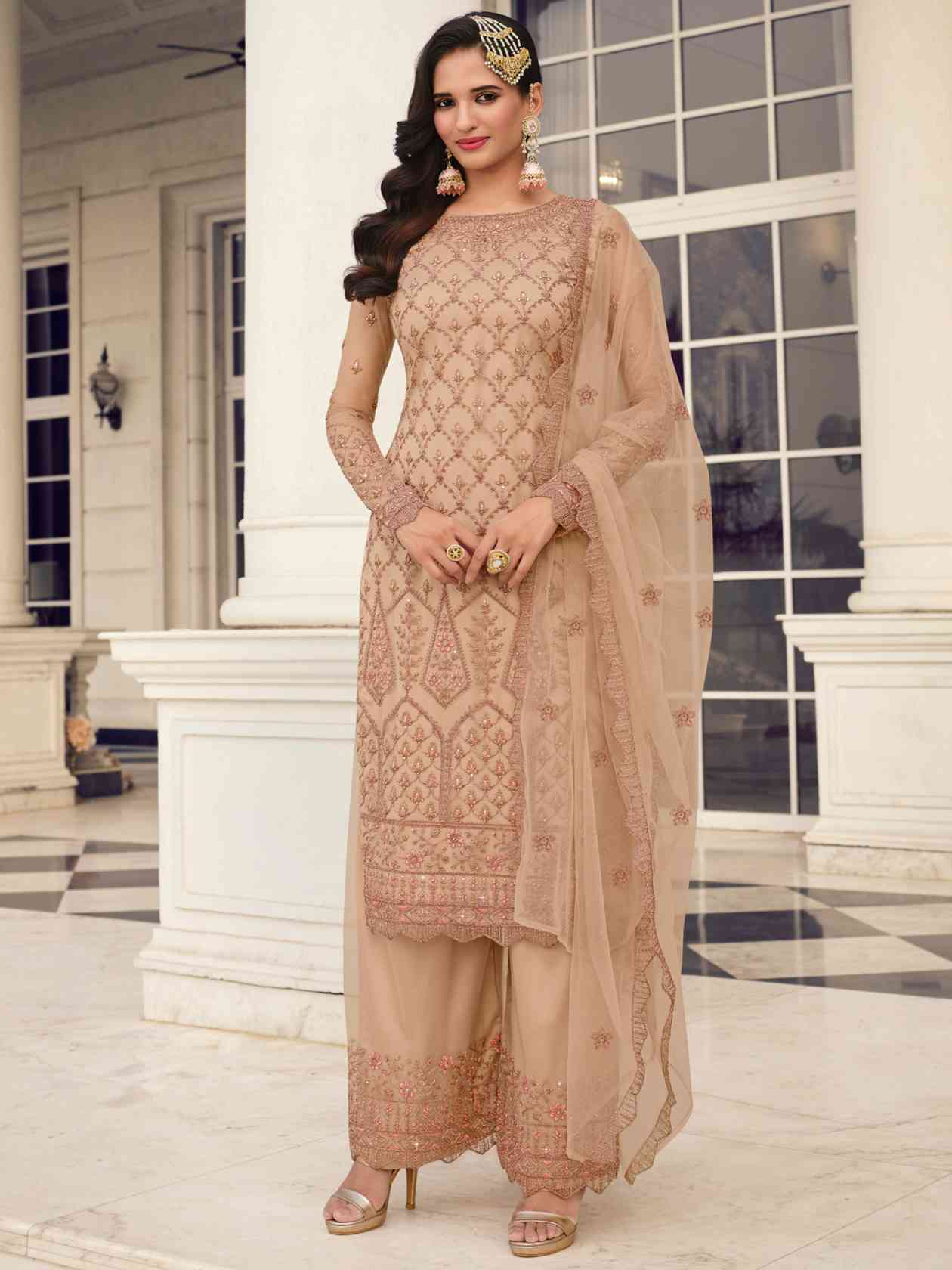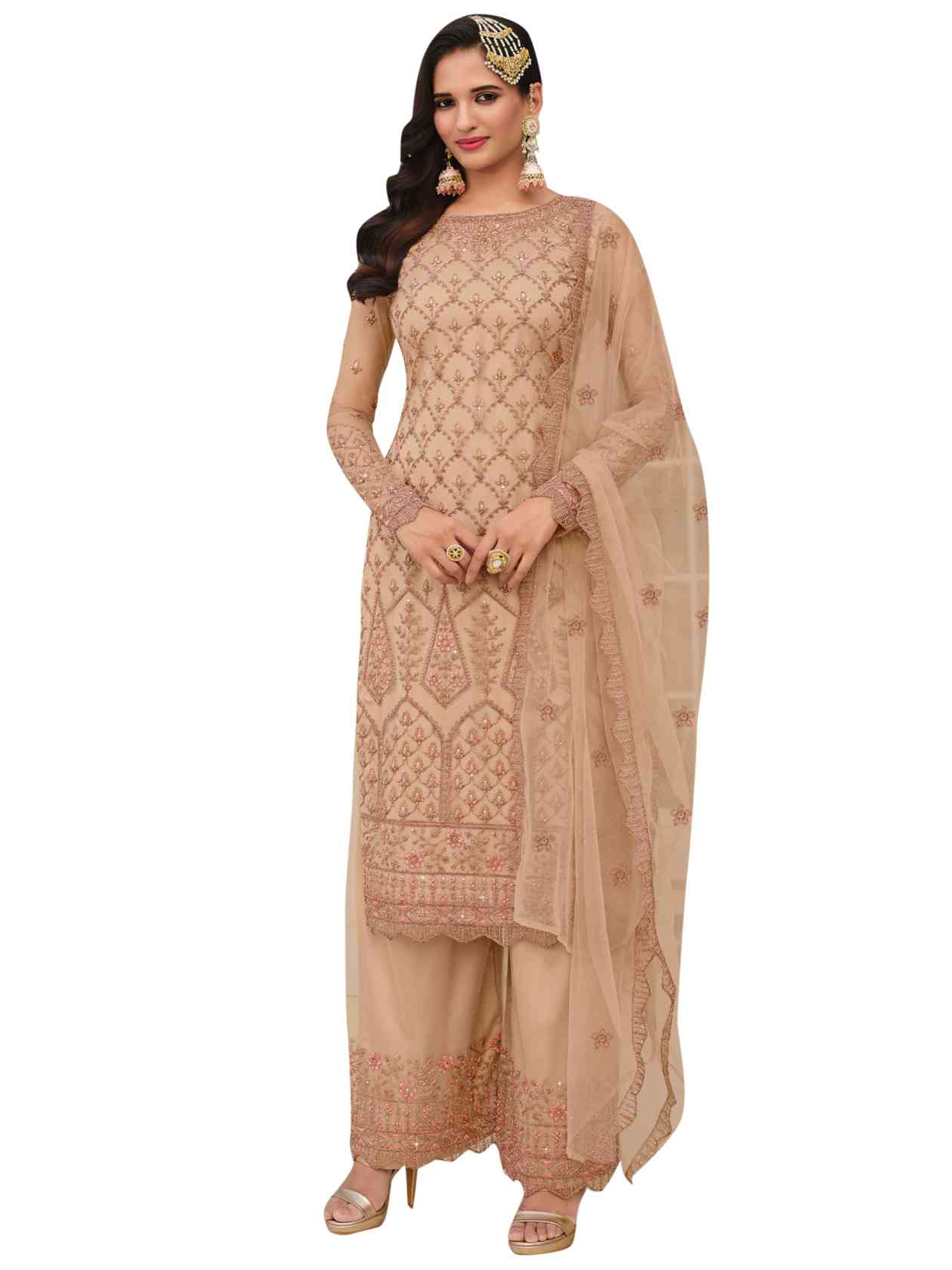 Top Colour:Beige, Bottom colour:Beige, Dupatta colour:Beige,Inner colour:Beige,