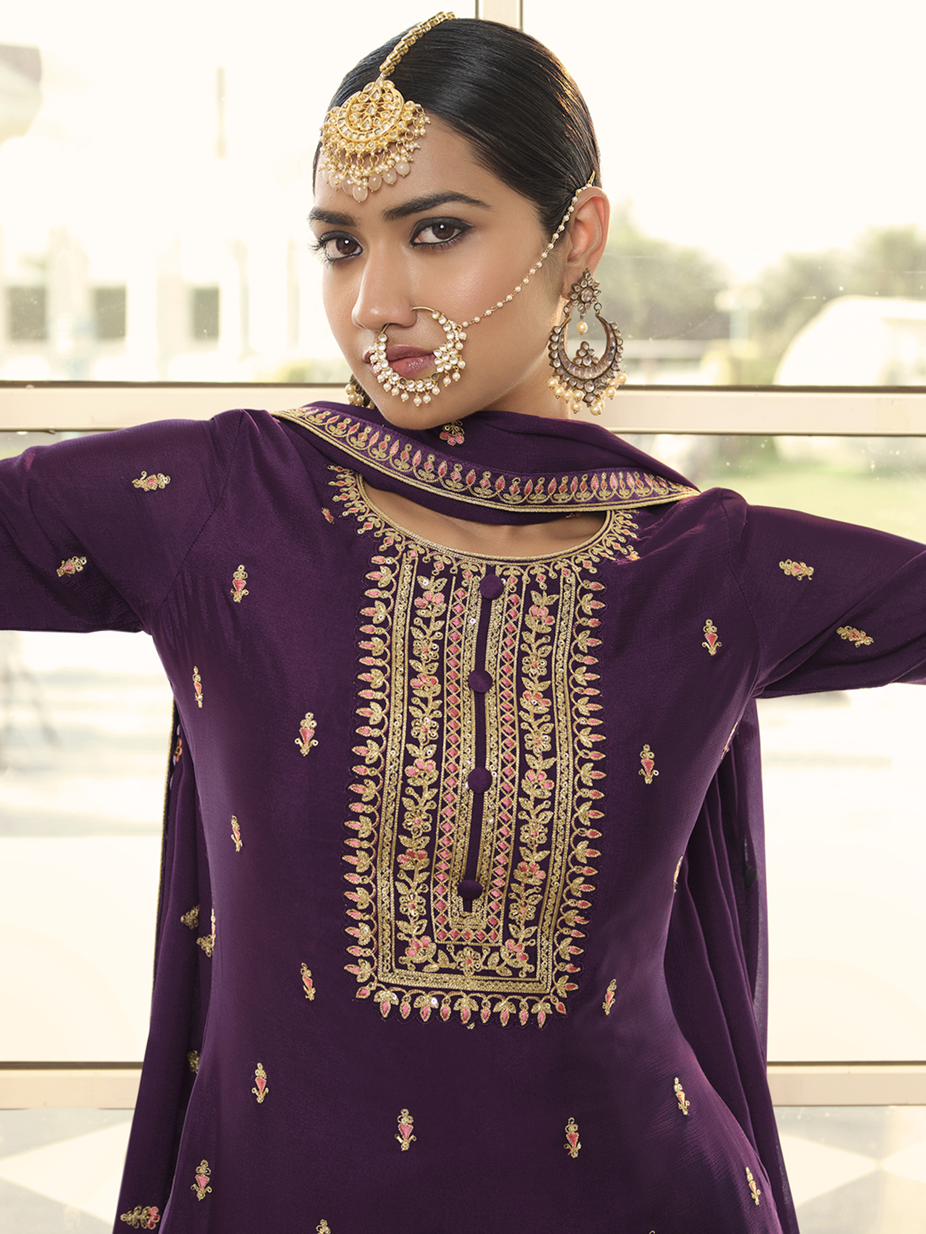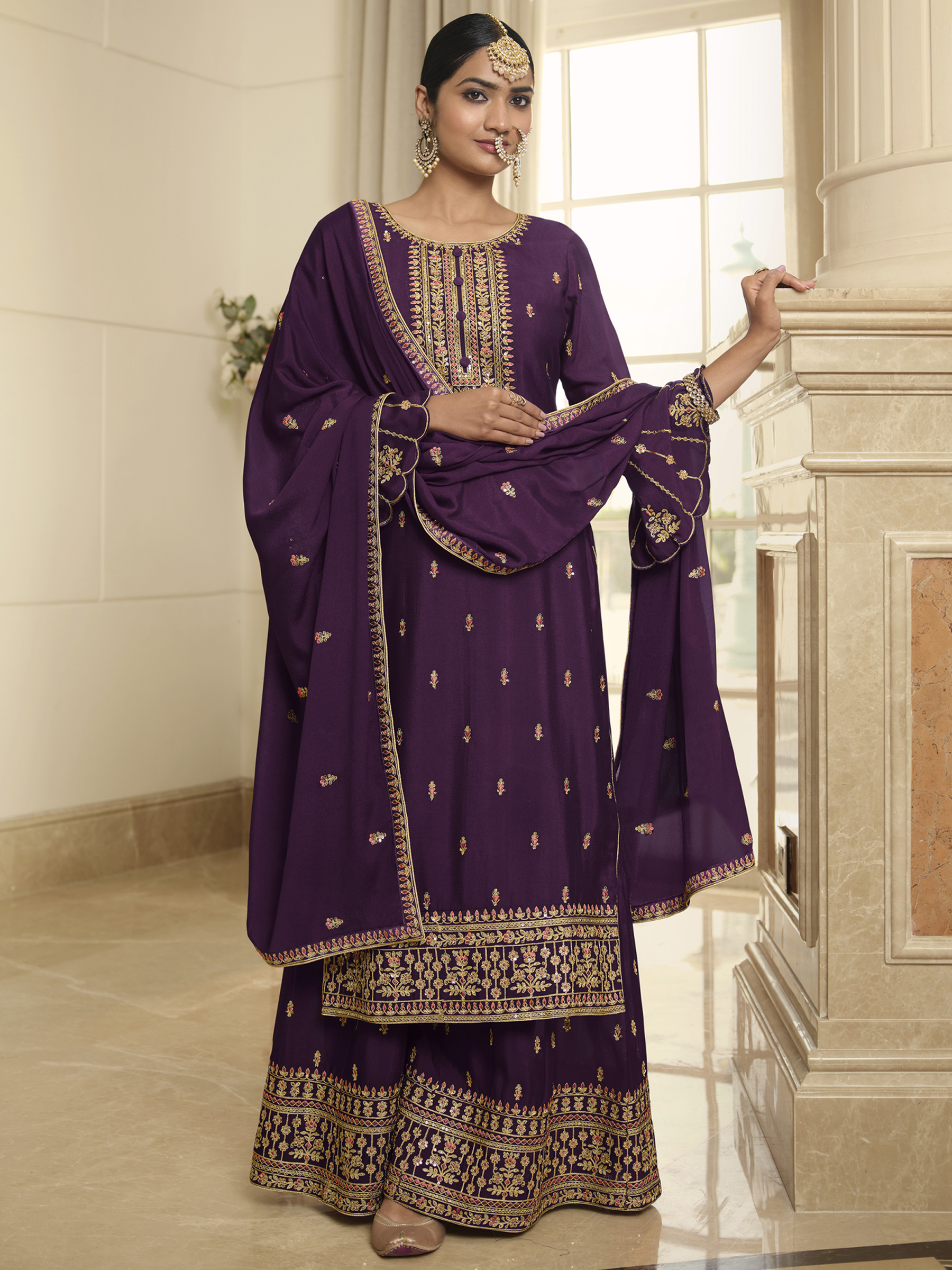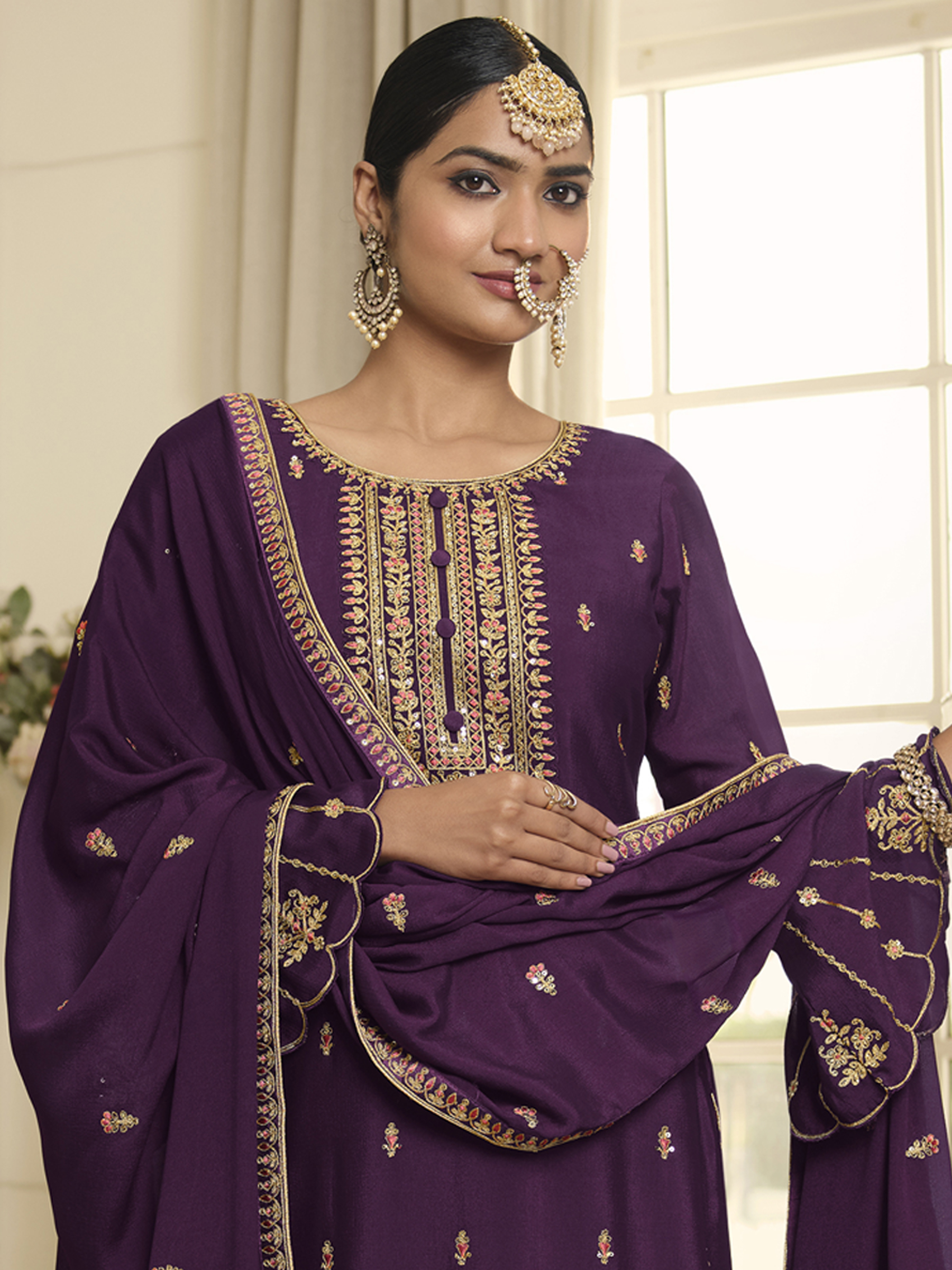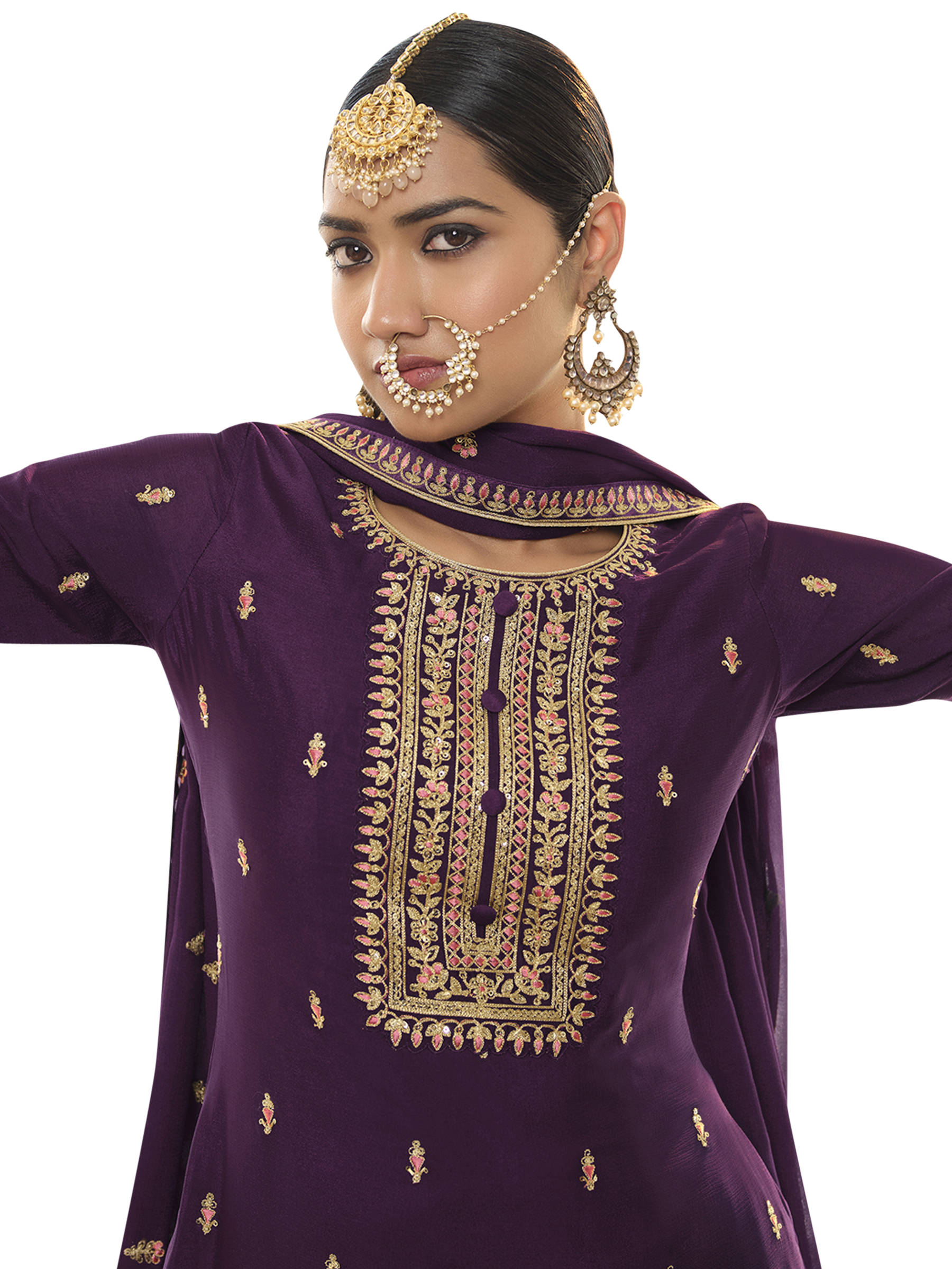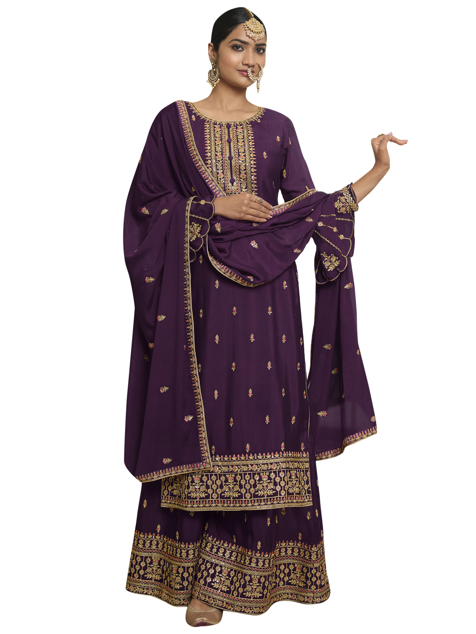 Top Colour:Purple, Bottom colour:Purple, Dupatta colour:Purple,Inner colour:Purple,