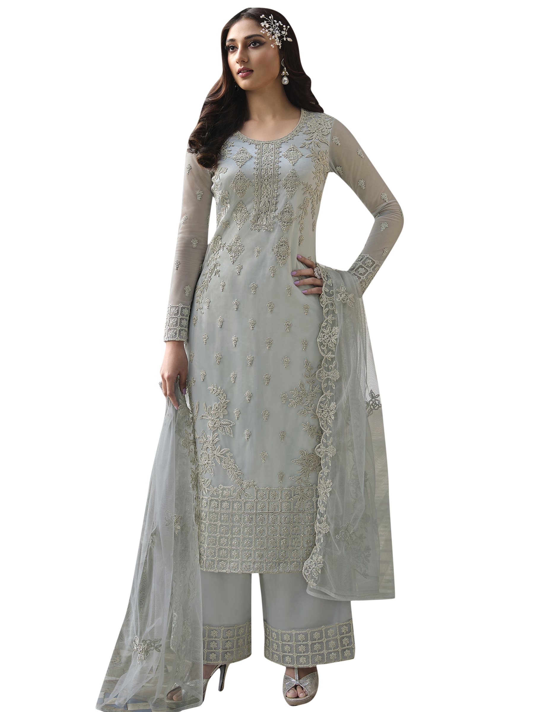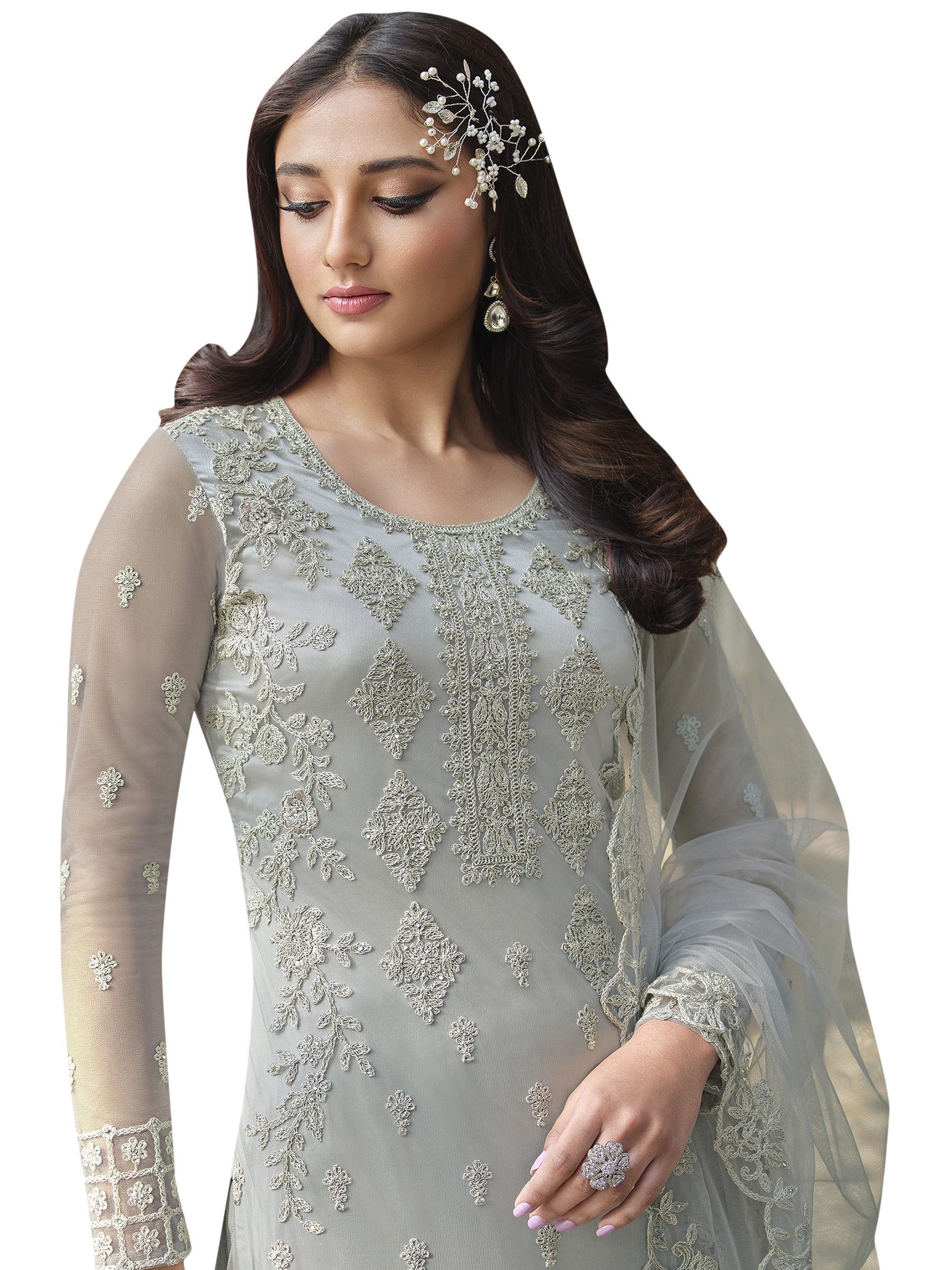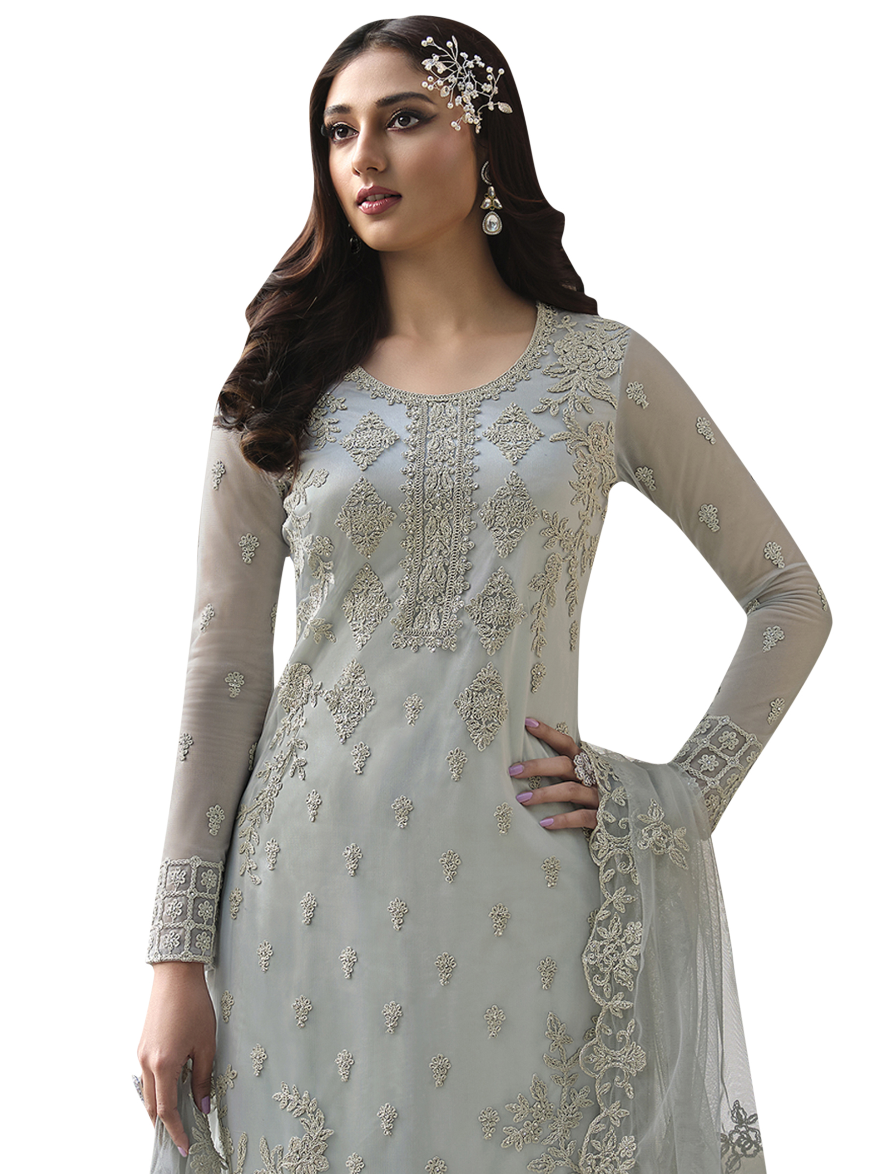 Top Colour:Grey, Bottom colour:Grey, Dupatta colour:Grey,Inner colour:Grey,