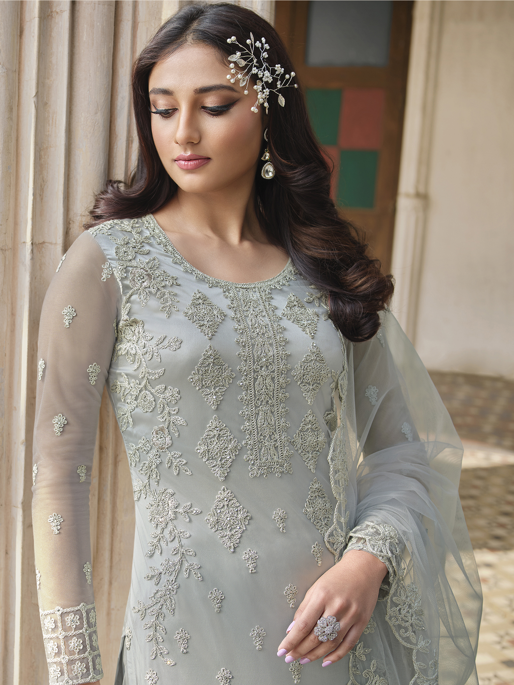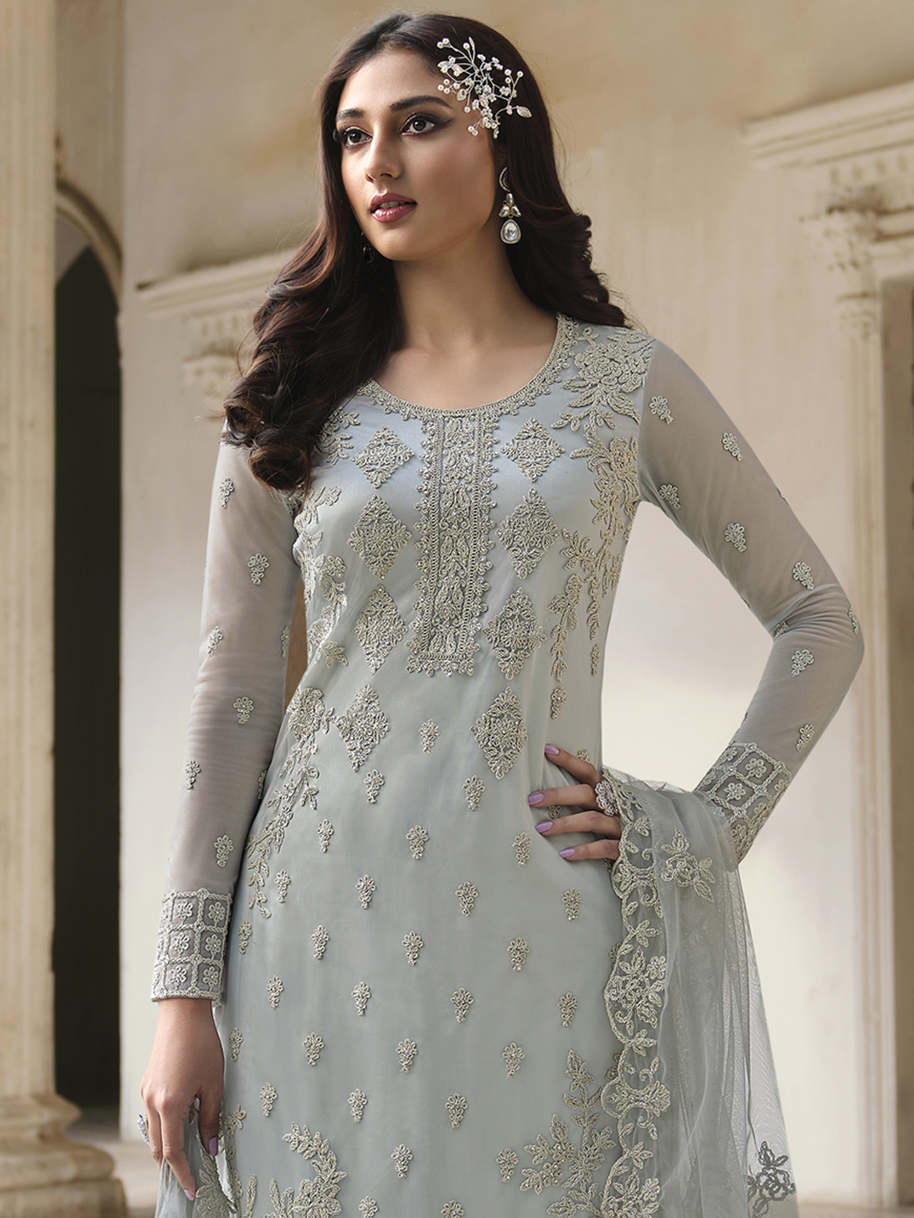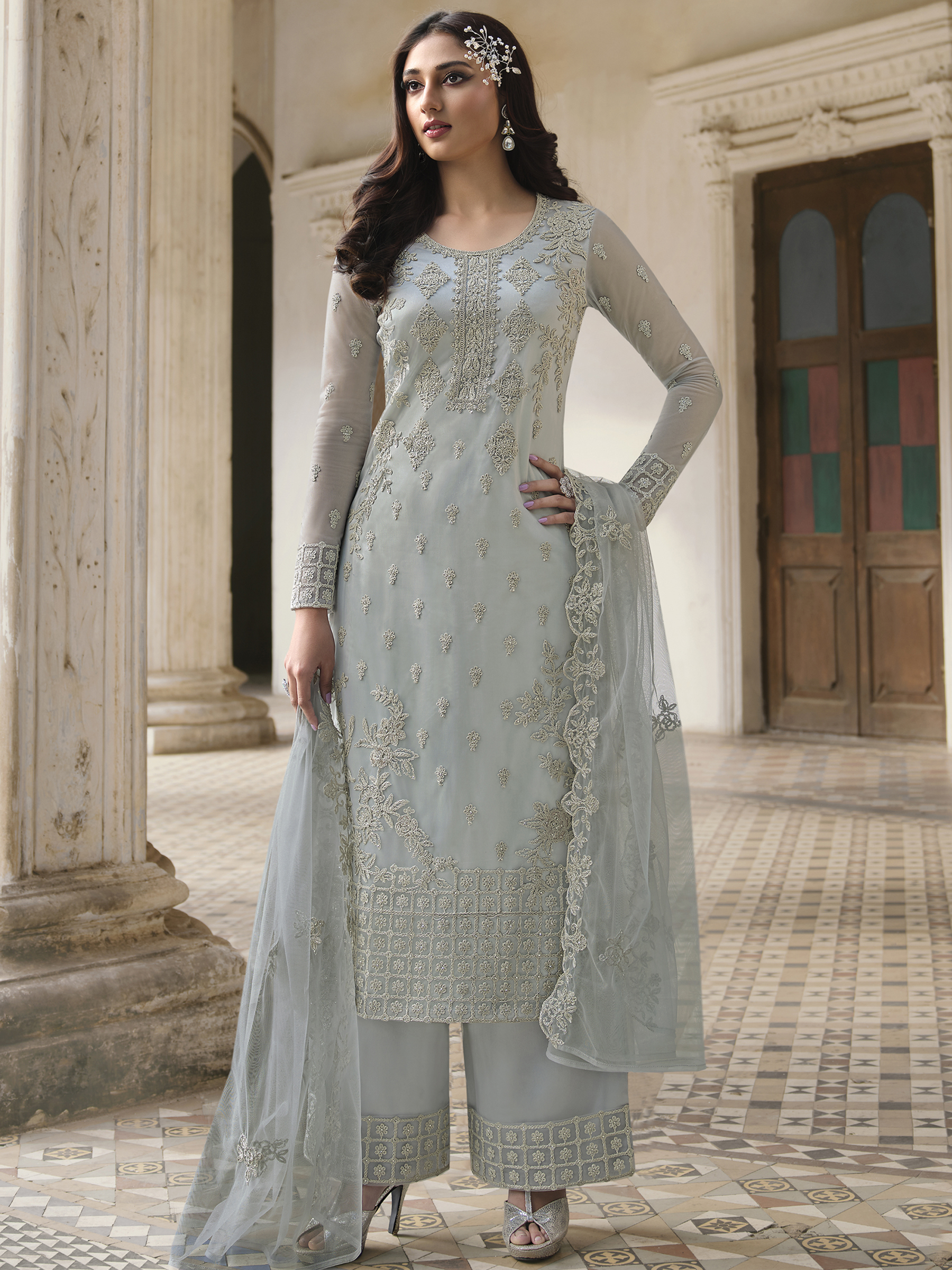 Top Colour:Grey, Bottom colour:Grey, Dupatta colour:Grey,Inner colour:Grey,