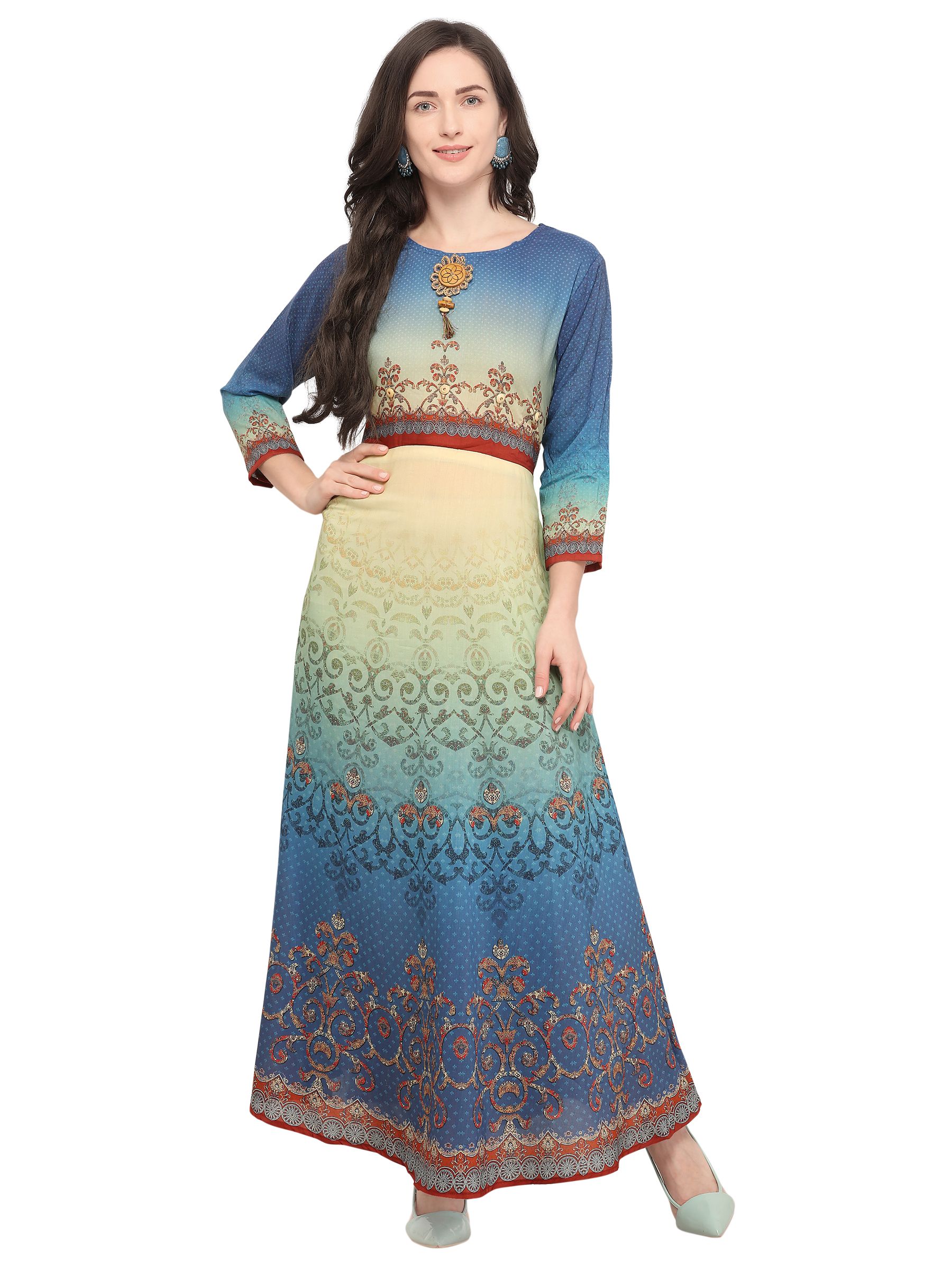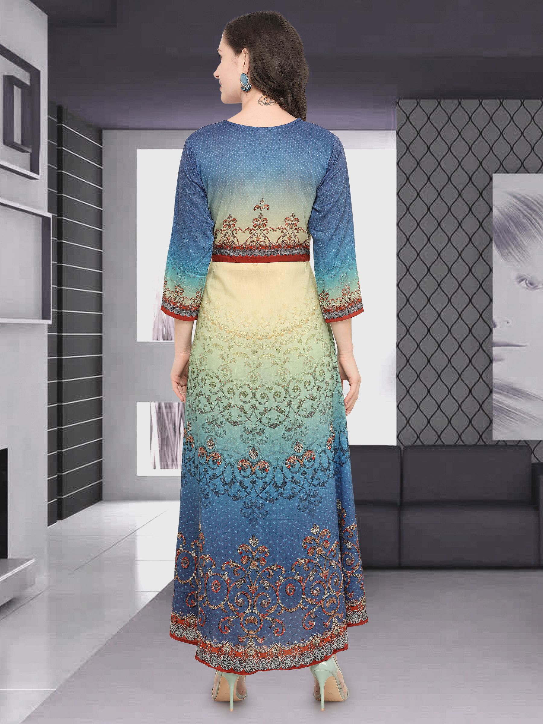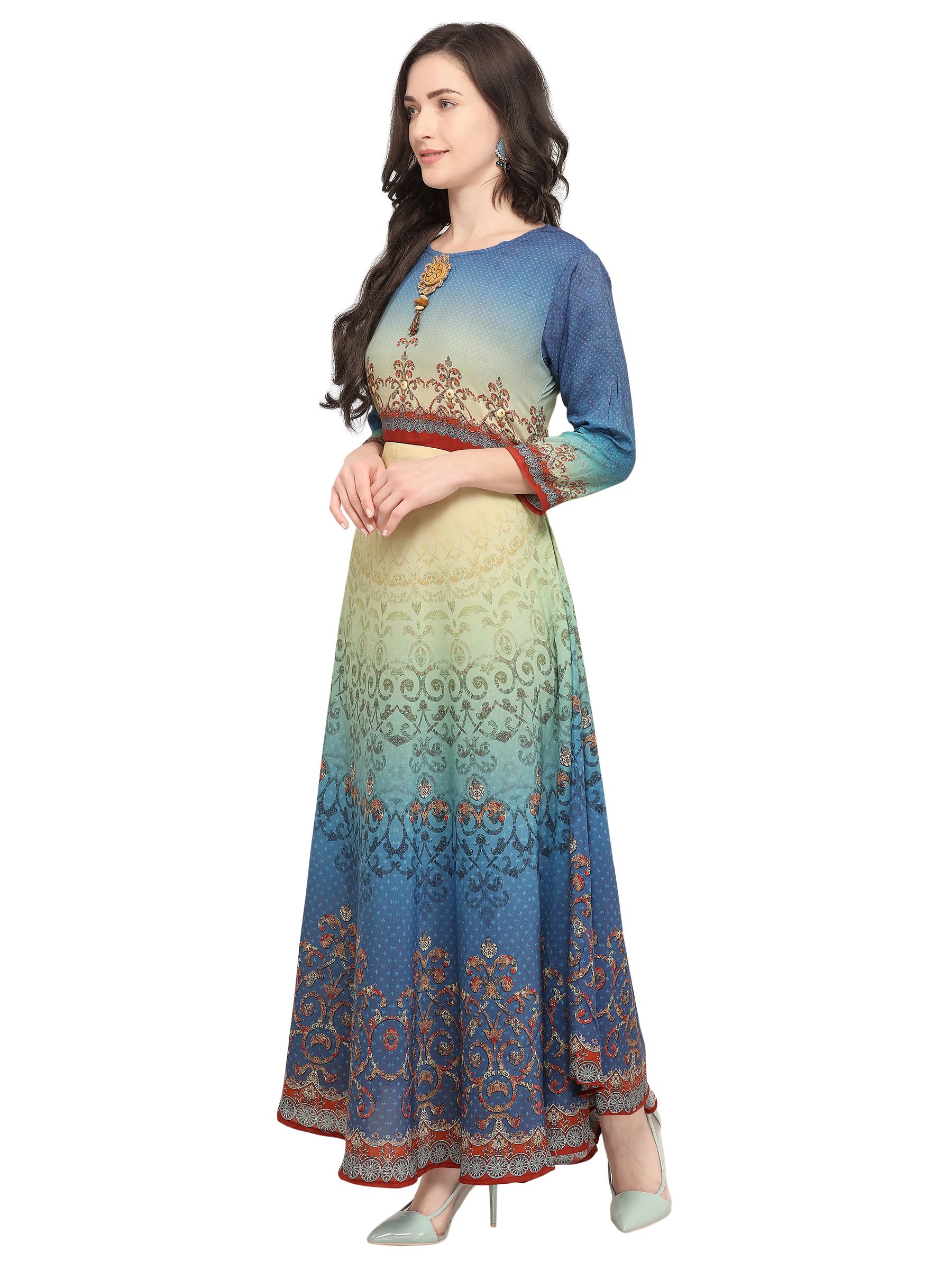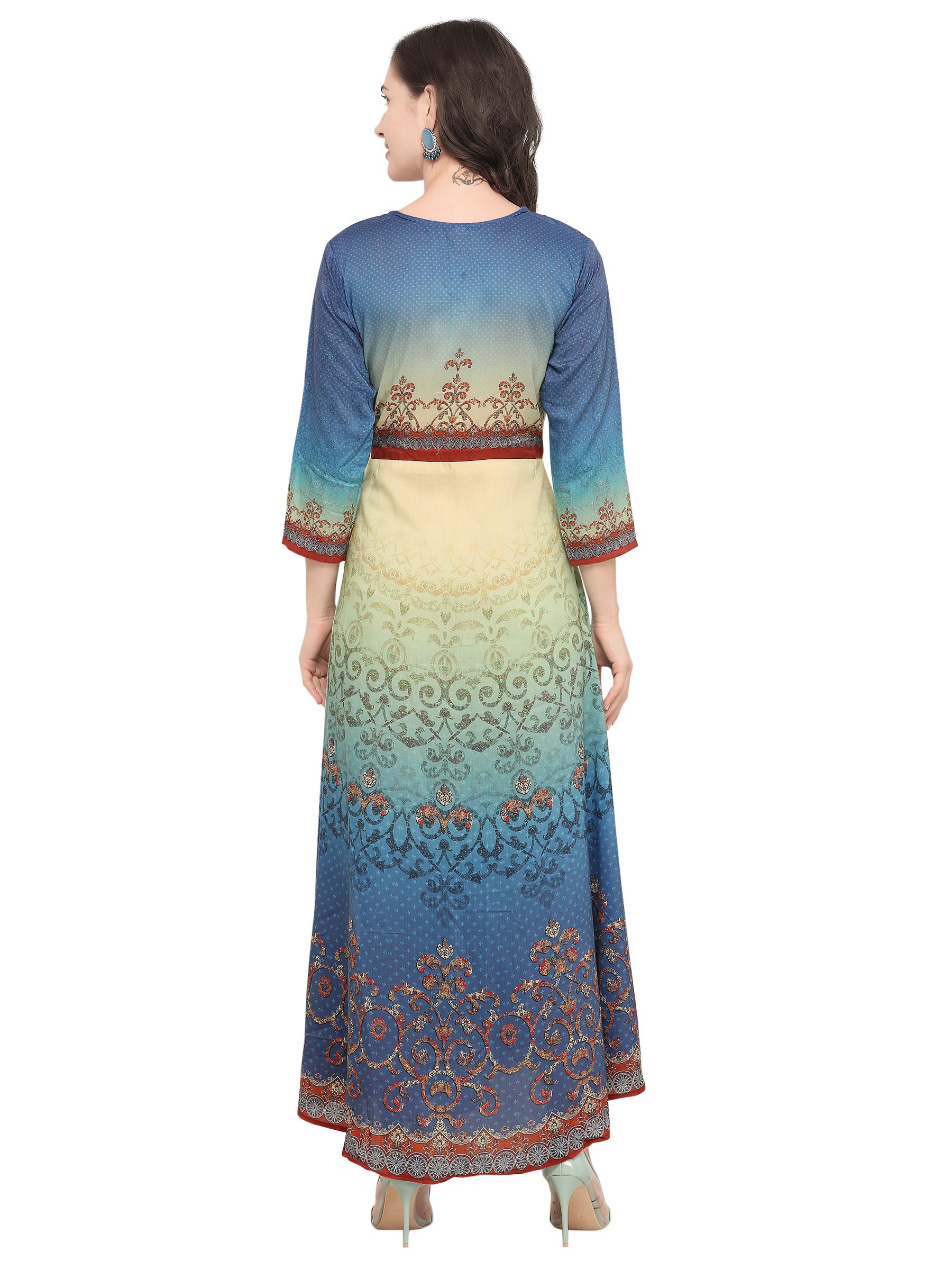 Stylee Lifestyle presents the all new collection of Printed Kurti. Pair them with matching accessories to look trendy and gorgeous. Elegant Allover Abstract Digital Print With Kali Work & Crystal. DECLAIMER: The accessories on model are only for presentation purpose and not part of the product sold. The color of the product might slightly vary due to photoshoot effect or display brightness set-up.