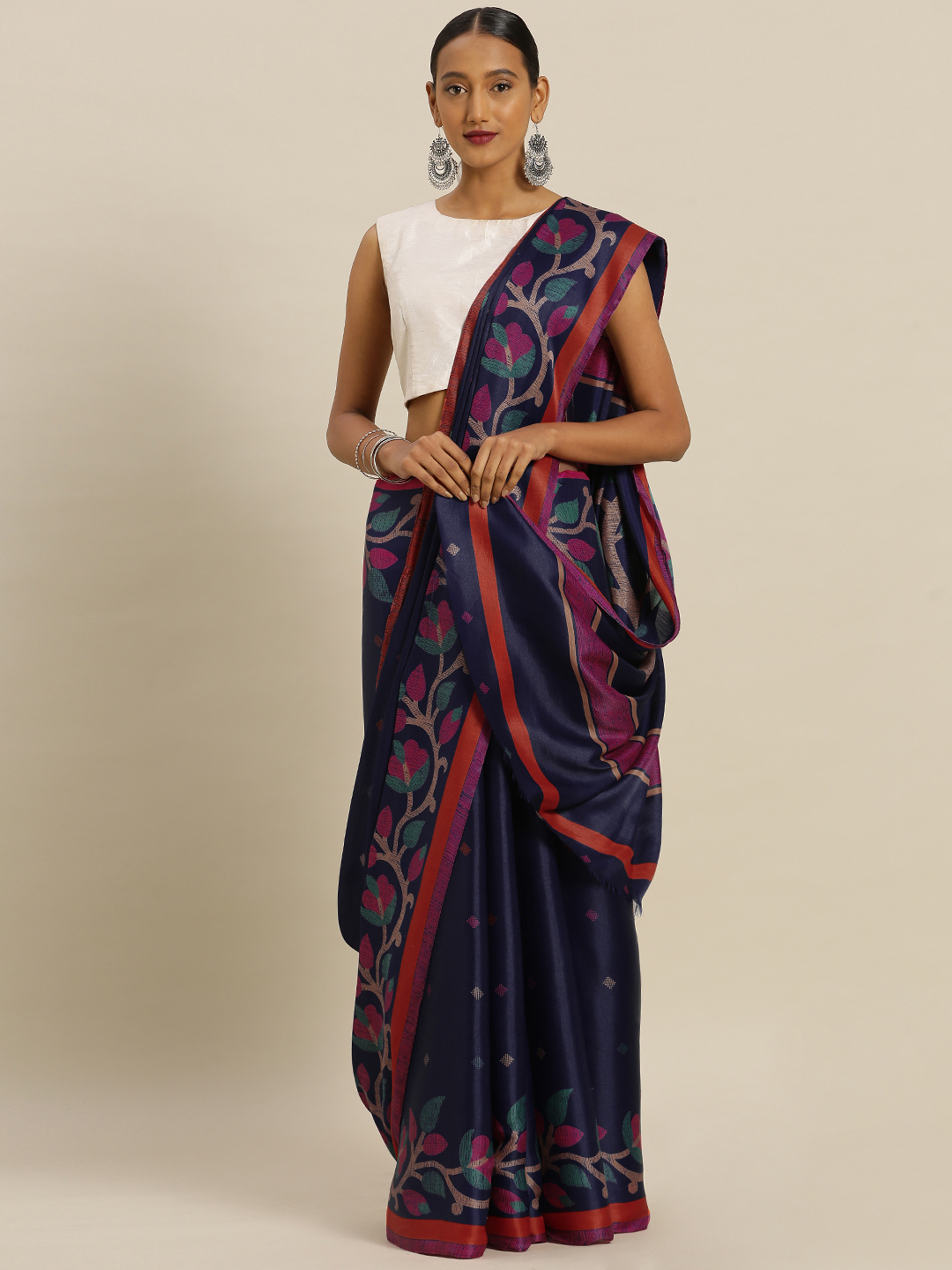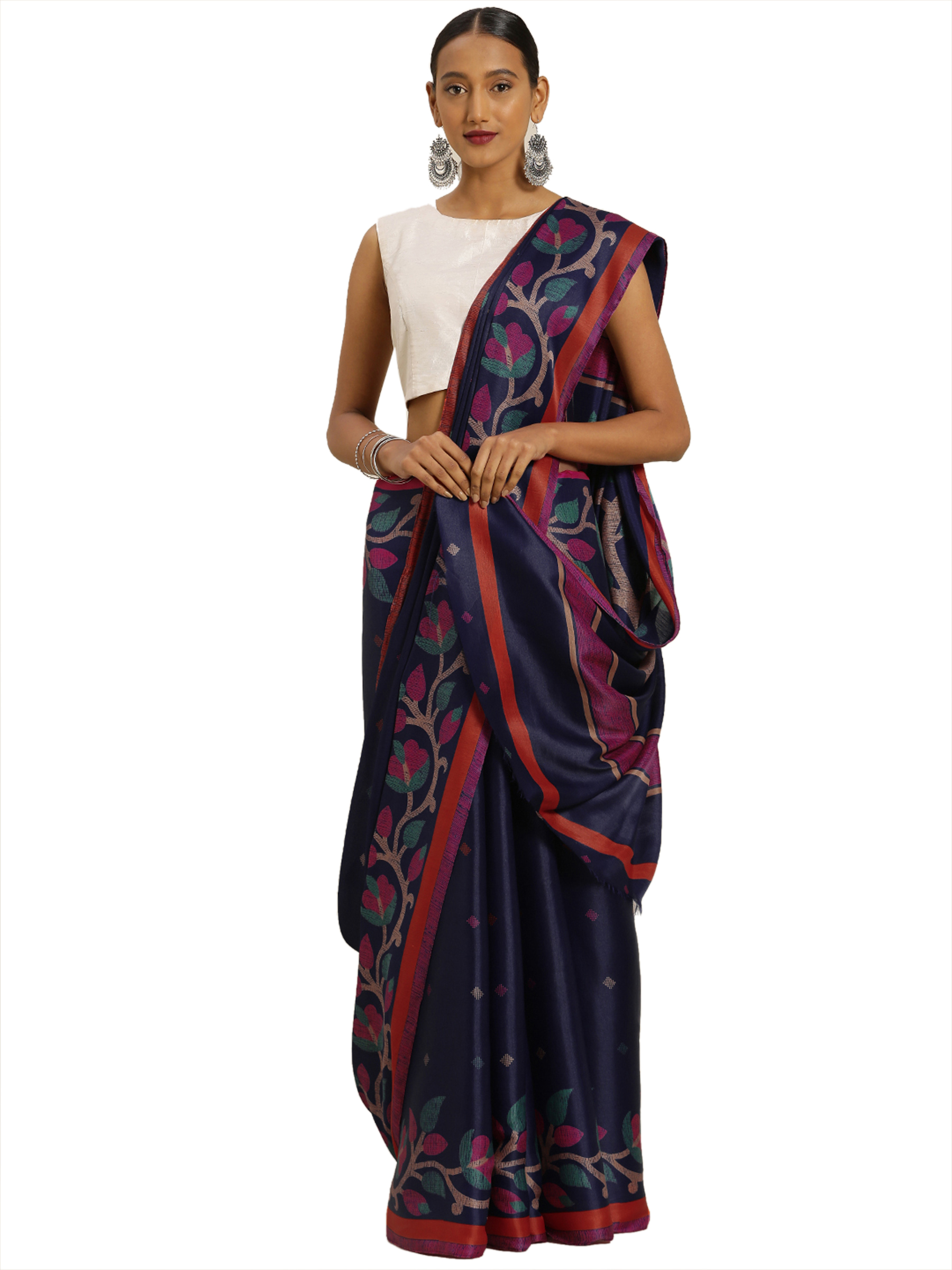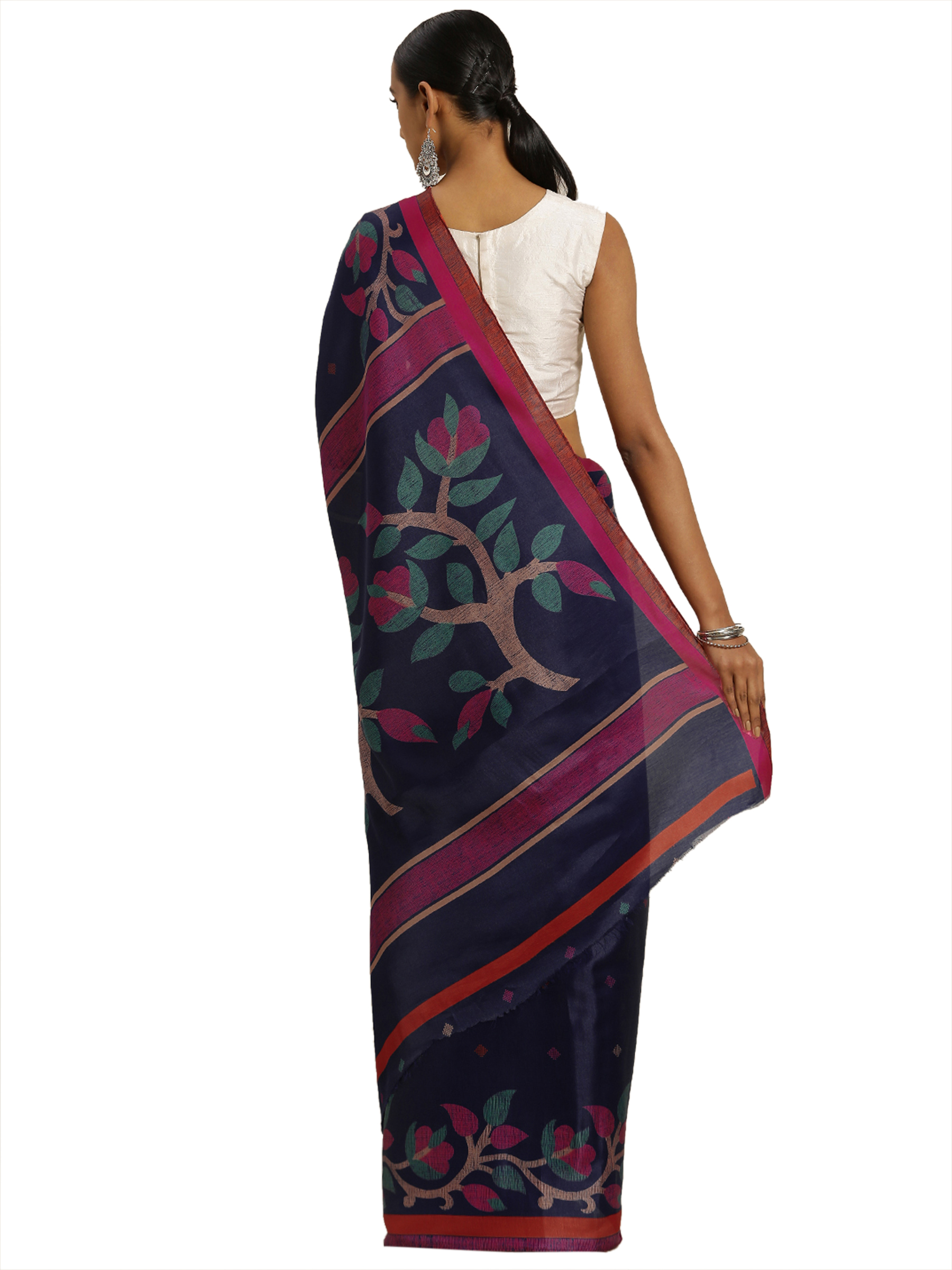 Navy Blue Tussar Silk Printed Saree